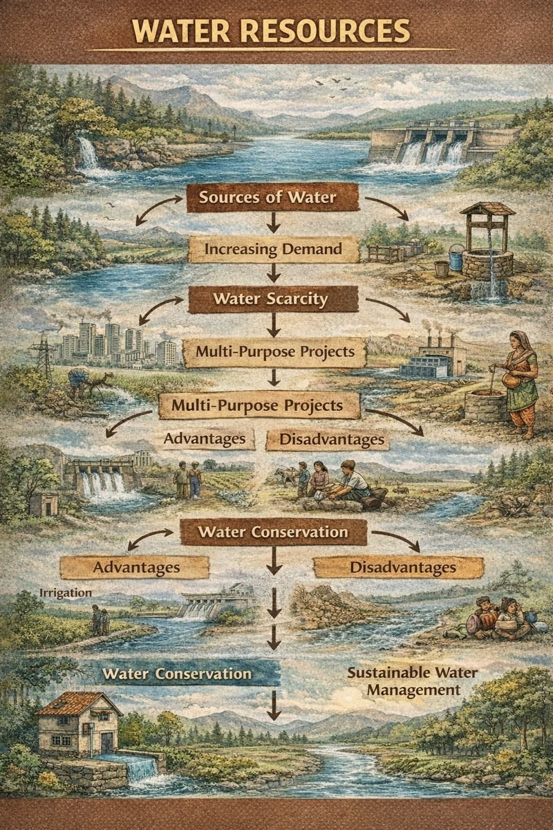 Meta Description (150–160 Characters) Water Resources Class 10 NCERT notes with summary, keywords, MCQs, important questions and exam tips for…