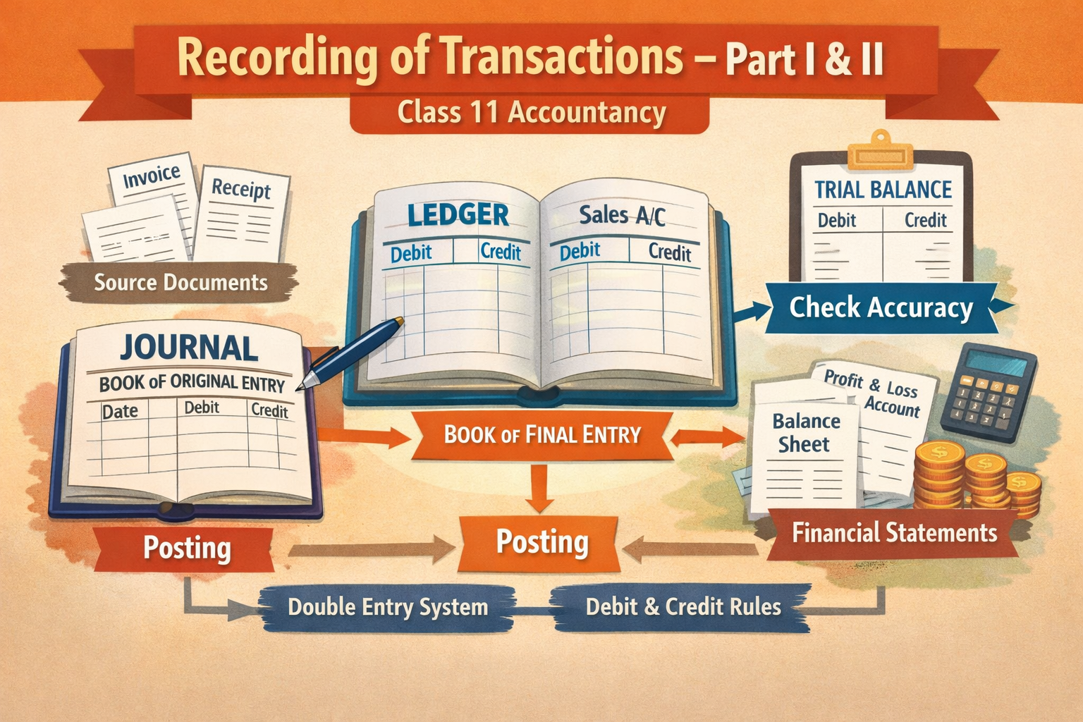 Primary Keywords: Recording of Transactions – Part I & II, Class 11 Accounts notes, journal entries, ledger posting, trial balanceSecondary…