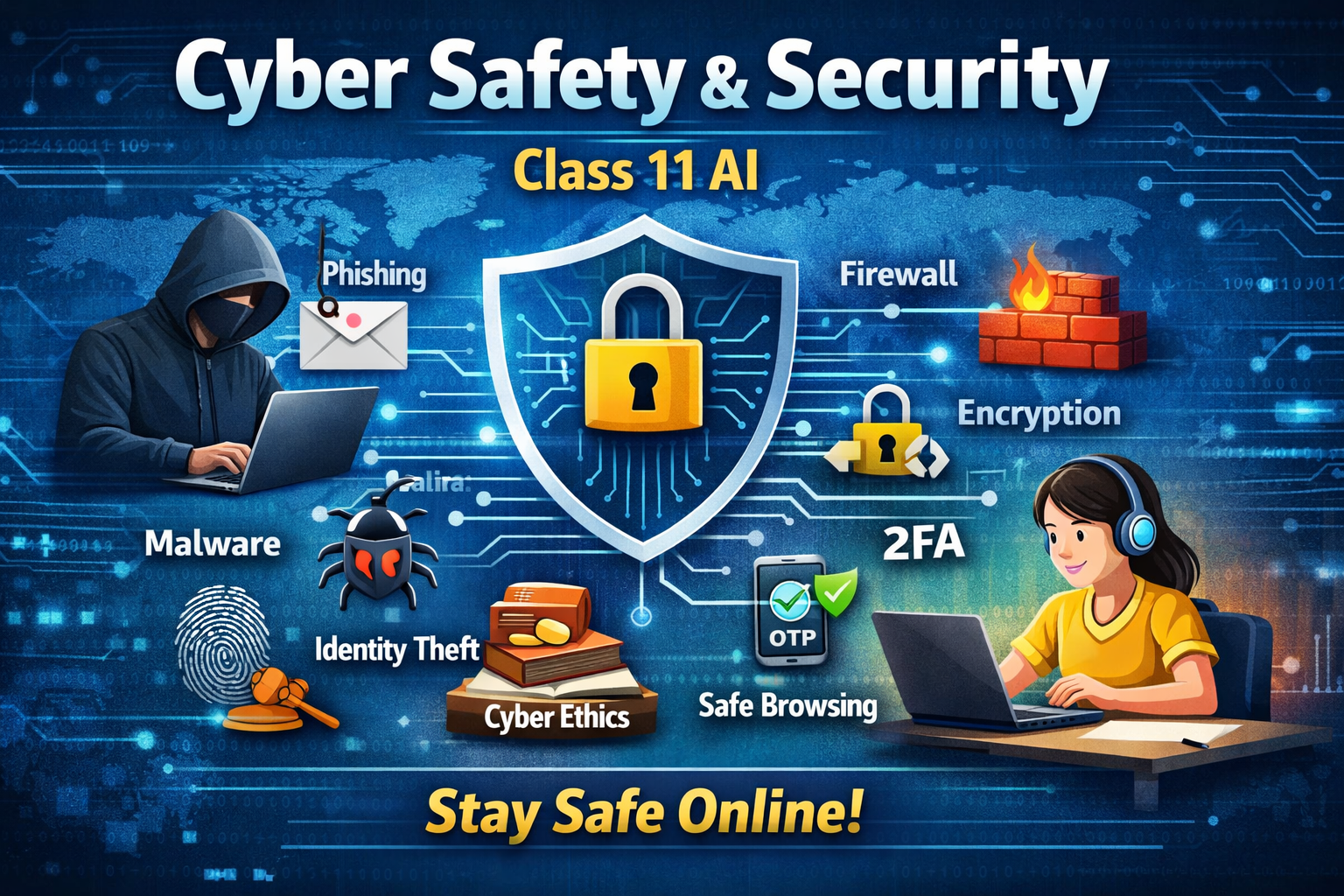 Meta Description Complete Cyber Safety & Security Class 11 AI notes, summary, MCQs, keywords, and questions for exam preparation and…