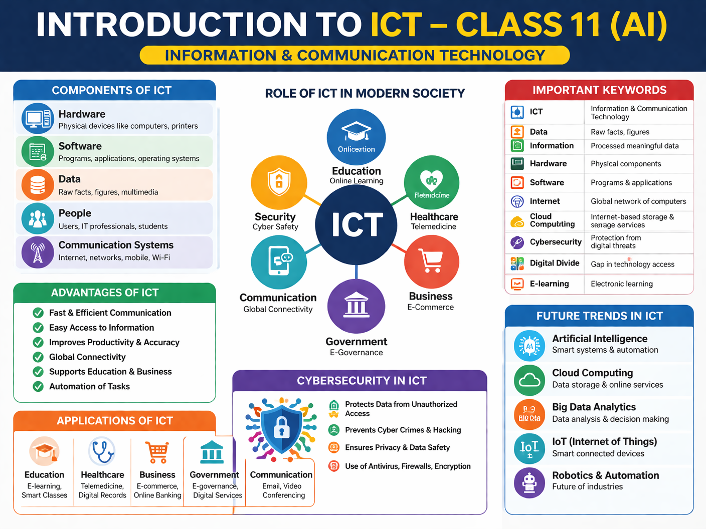 Meta Description Comprehensive Introduction to ICT Class 11 AI notes, summary, MCQs, keywords, and questions answers for exam preparation and…