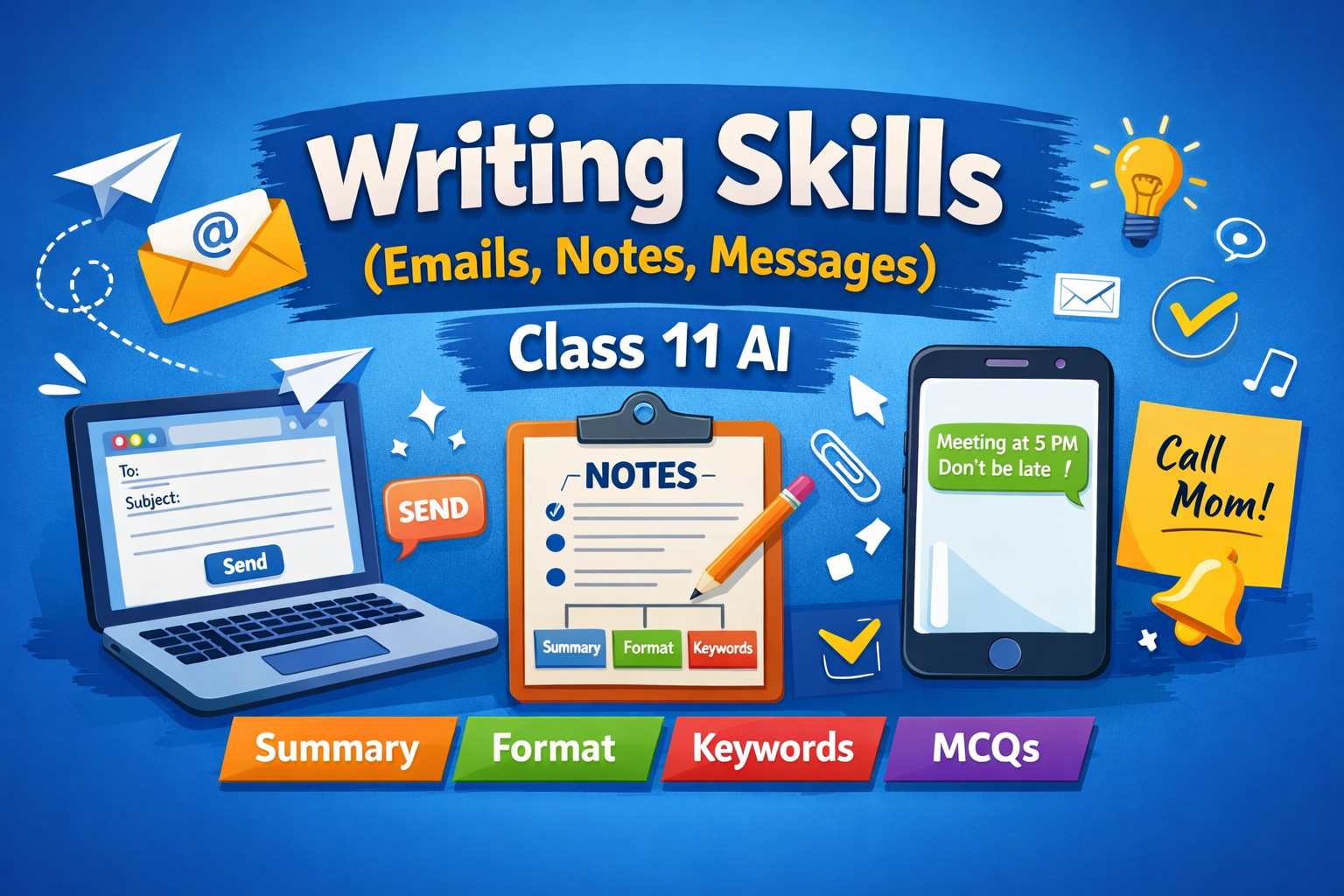 Meta Description Complete Class 11 AI Writing Skills (Emails, Notes, Messages) notes, summary, MCQs, keywords, questions and answers for exam…