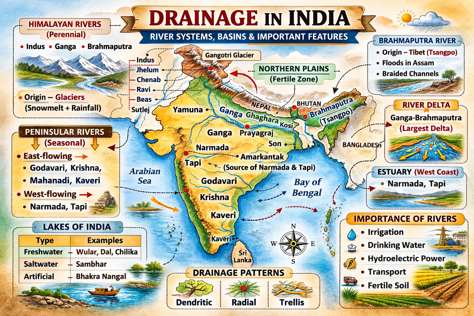 Meta Description:Complete Drainage Class 9 notes, summary, MCQs, keywords, and important questions. Simple NCERT Geography revision guide for exams and…